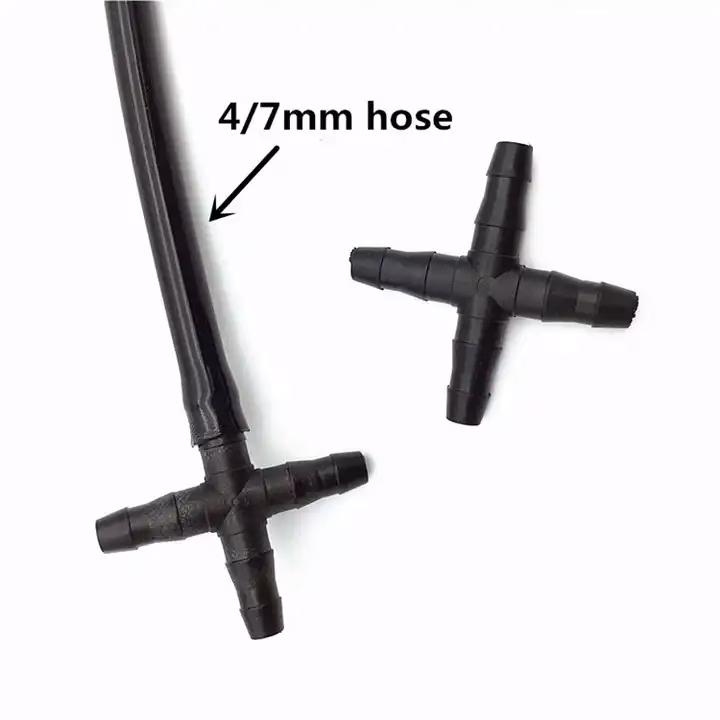 Four Way Cross Tee Connectors for 4/7mm Microtube, Irrigation Pipe for Garden and Greenhouse Watering Irrigation Connector.