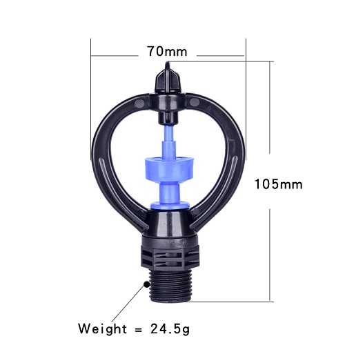 This sprinkler features a 1/2 inch male threaded inlet, which fits easily with standard irrigation pipes and fittings. Additionally, the high-quality plastic construction ensures durability, UV resistance, and long-term outdoor performance. As a result, it withstands various weather conditions without degrading or cracking.