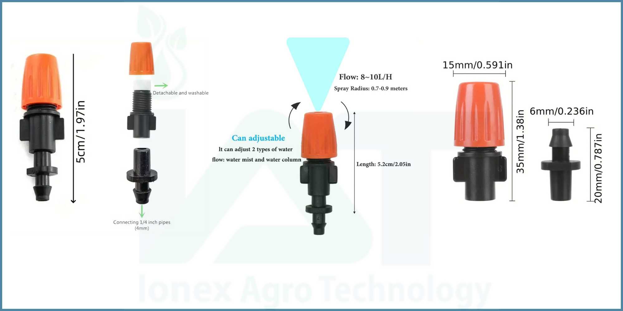 Mist Spray Irrigation Nozzle Package Includes: