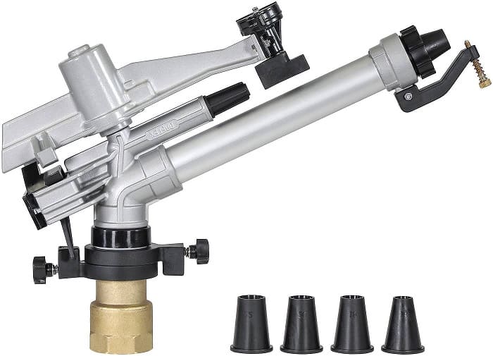 Irrigation Raingun, Two (2.0) Inch Size Female Thread, Pivot End Large Metal Raingun Spraying Distance 80-130 Feet, Angle Adjustable Garden Lawn Irrigation Spray Dust Removal Site Garden Irrigation.