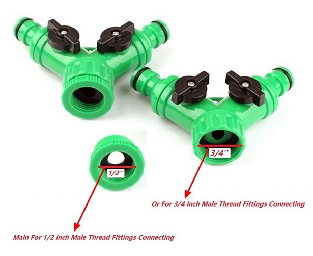 Two Way Splitter Connector, Y-Type Quick Tap Connector Ball Valve, Water Inlet Connection Size 1/2′ and 3/4′ Outlet Connection Size 16mm Garden Irrigation System Water Connector Fitting.